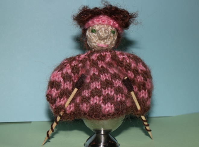 Eierwärmer 'Frau mit Walking - Stöcken'