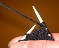 nach links in die Masche der linken Nadel einstechen (Abb.Oben). |